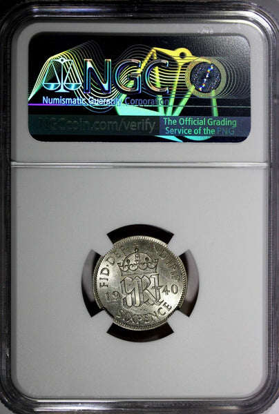 GREAT BRITAIN George VI Silver 1940 6 Pence NGC AU58 KM# 852 (216)
