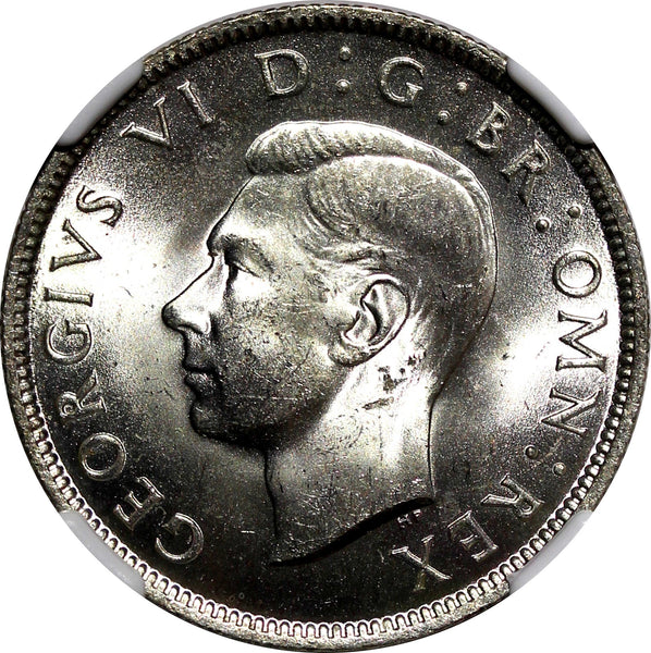 Obverse: Uncrowned portrait of King George VI left, legend around.
