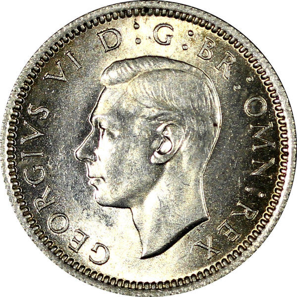 Obverse: Uncrowned portrait of King George VI left, legend around.