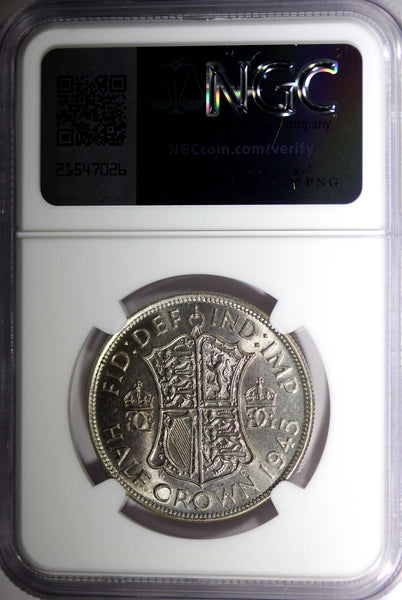 Great Britain George VI Silver 1945 1/2 Crown NGC MS62 32.3 mm KM# 856 (15)