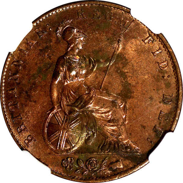 Reverse: Seated figure of Britannia right, with trident in left hand and shield