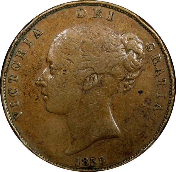 GREAT BRITAIN Victoria Copper 1858 1 Penny BETTER DATE KM# 739 (24 161)