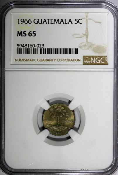 Guatemala 1966 5 Centavos SMALL DATE NGC MS65 TOP GRADED KM# 266.2 (023)
