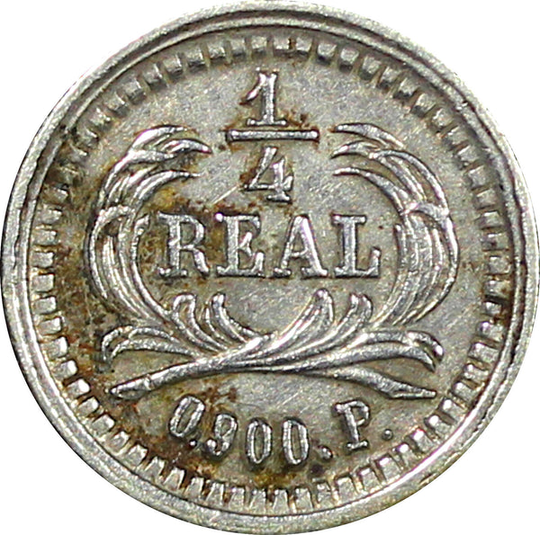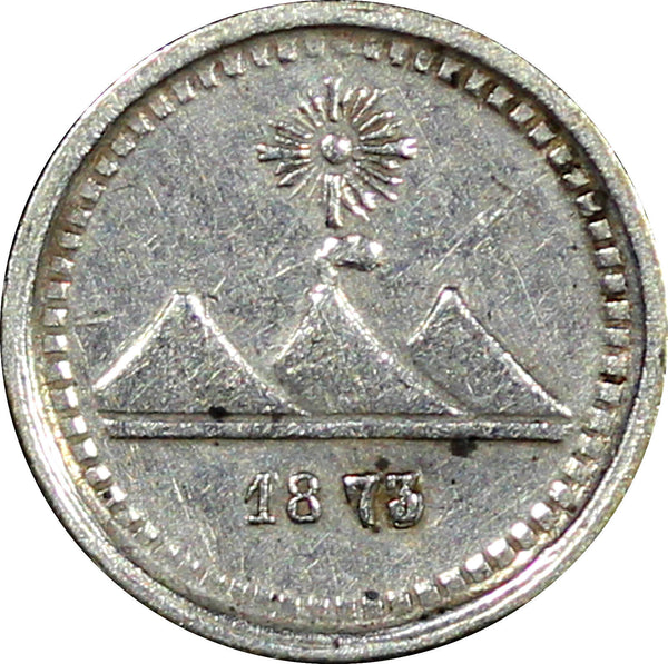 Guatemala Silver 1873 P 1/4 Real Sun with 3 Volcanoes KM# 146 (22 660)