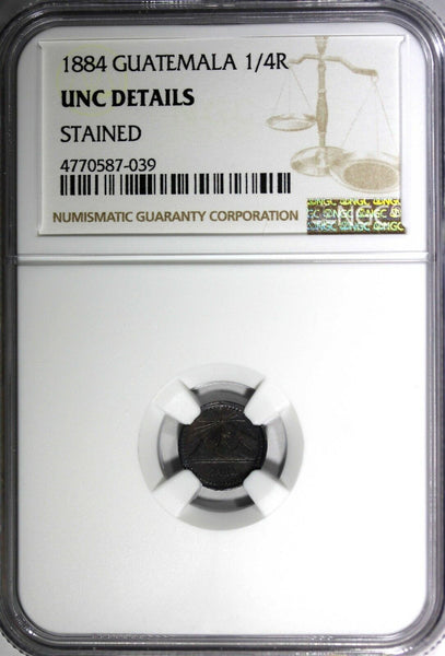GUATEMALA Silver 1884 1/4 Real NGC UNC DETAILS Low Mintage-100,000 KM# 151 (39)