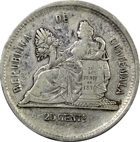 Guatemala Silver 1889 25 Centavos KM# 205.2 (22 587)