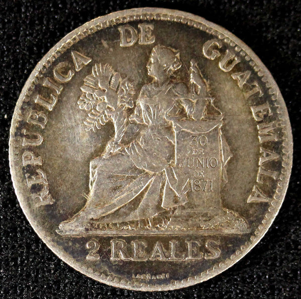 Guatemala Silver 1894 2 Reales 24 mm Nice Toned KM# 167 (23 192)