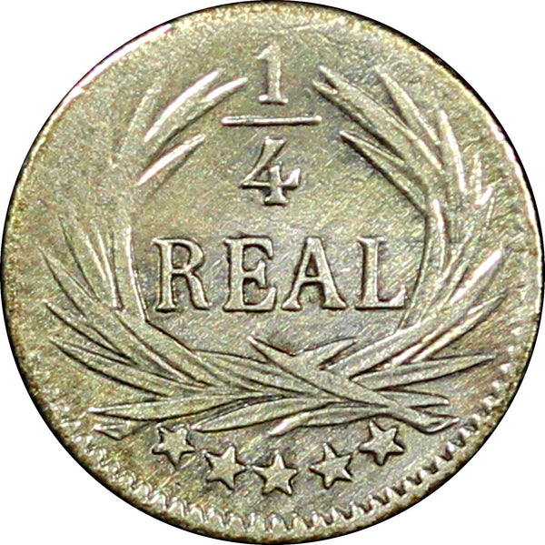 Guatemala Silver 1895 1/4 Real Radiant sun 3 volcanoes KM# 162 (22 680)