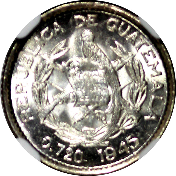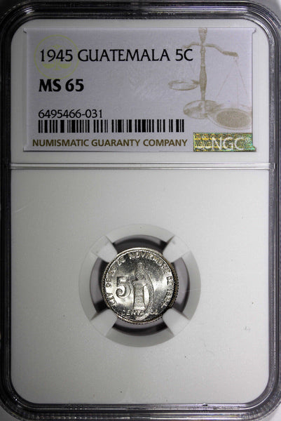 GUATEMALA Silver 1945 5 Centavos NGC MS65 GEM BU COIN KM# 238.1 (031)