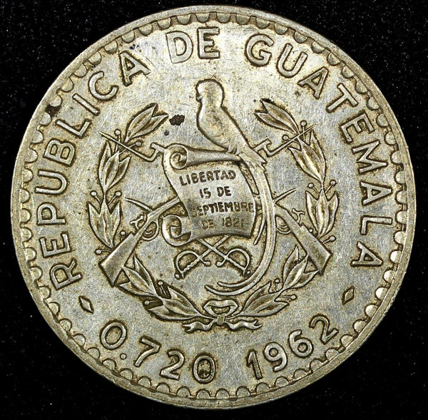 Guatemala Silver 1962 50 Centavos 31 mm Toned KM# 264 (24 652)