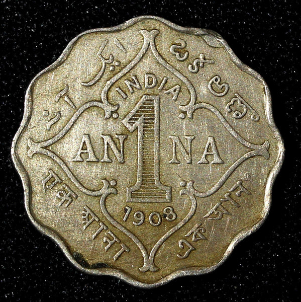 India-British Edward VII 1908 1 Anna Nice Toned KM# 504 (27 571)