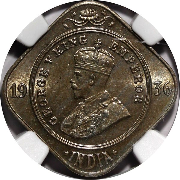 India-British George V 1936 (B) 2 Annas NGC MS62 Bombay Mint KM# 516 (001)