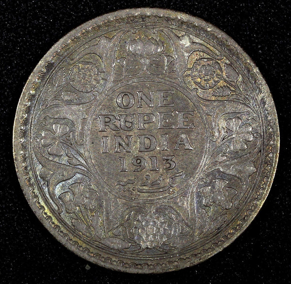 India-British George V Silver 1913 Rupee Bombay Mint Toned KM# 524 (27 361)