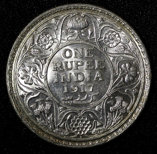 India-British George V Silver 1917 (C) 1 Rupee Calcutta aUNC /UNC KM# 524 (051)