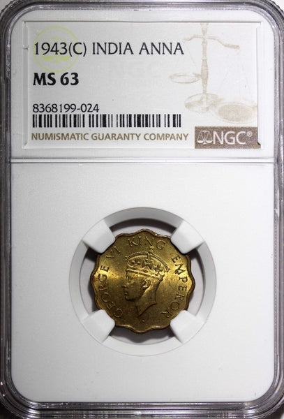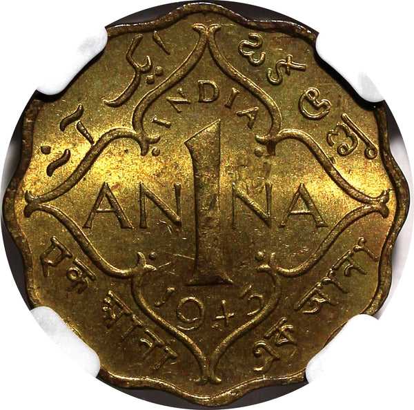 India-British George VI Nickel-Brass 1943 (C) 1 Anna NGC MS63 KM# 537a (024)
