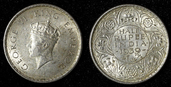 Silver 1939 (C) 1/2 Rupee