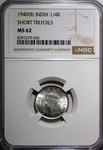 India-British George VI Silver 1940 (B) 1/4 Rupee NGC MS62 KM# 545 (026)