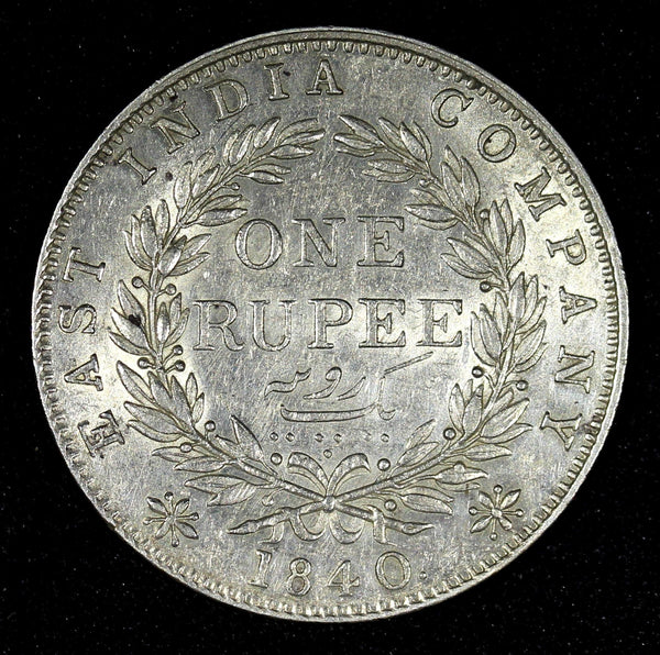 Reverse: Value within wreath in English and Urdu (Yek Rupiya), outside wreath