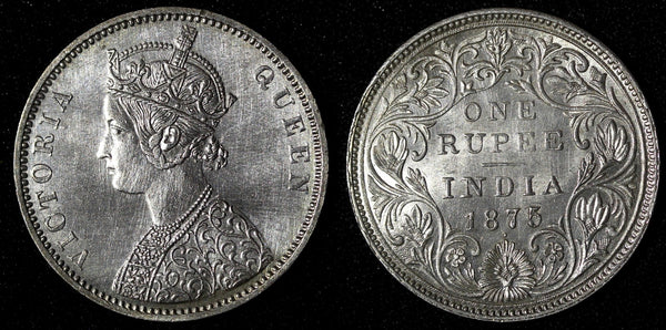 India-British Victoria Silver 1875 (B) Rupee HIGH GRADE KM# 473.2 (28 296)
