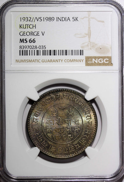 India KUTCH Silver 1932 VS 1989 5 Kori NGC MS66 Rainbow TOP GRADED Y# 53a (35)