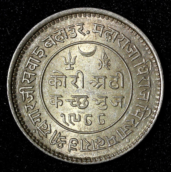 Within circle, legend in Devanagari:"Kori Paanch/Kutch Bhuj/VS date"