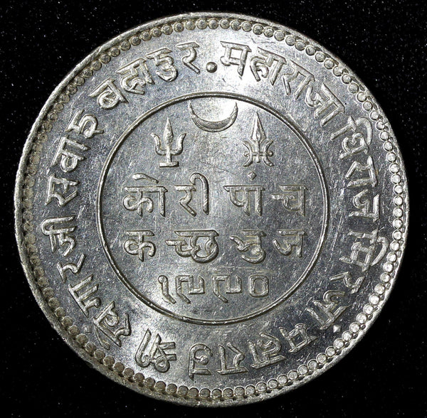 Within circle, legend in Devanagari:"Kori Paanch/Kutch Bhuj/VS date"