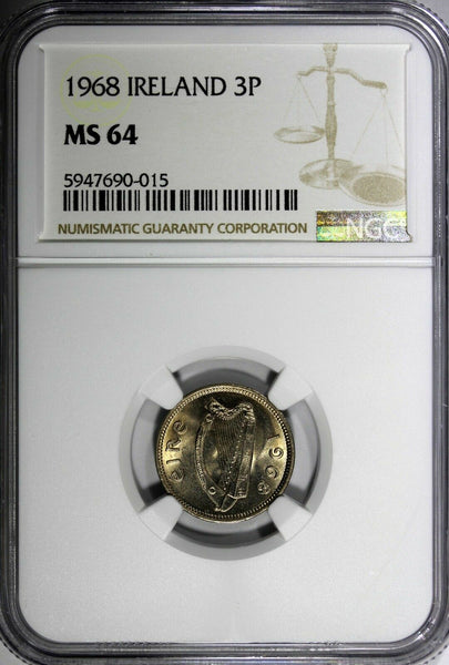 Ireland Republic Copper-Nickel 1968 3 Pence NGC MS64 LAST YEAR TYPE KM# 12a (15)