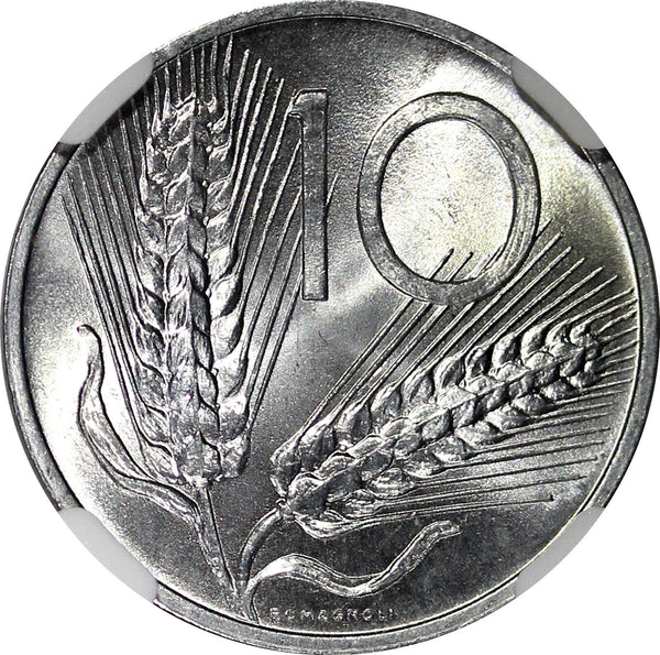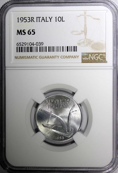 Italy Aluminium 1953 R 10 Lire NGC MS65 TOP GRADED KM# 93 (39)