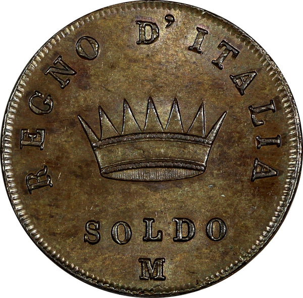 ITALY Kingdom of Napoleon Napoleon founded Napoleonic Italy in 1805, and it ended in 1811. Here's a soldo coin (1/20 of a lire) from Napoleon's reign. 1808 M Milan SOLDO MINT LUSTER .aUNC .SCARCE CONDITION. Please check out my other listings and we will be happy to combine in one package ! YOU WILL RECEIVED THE SAME COIN AS PICTURED. ALL COINS ARE AUTHENTIC AS DESCRIBED. C/S 11 213