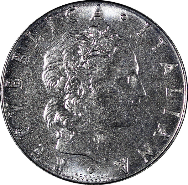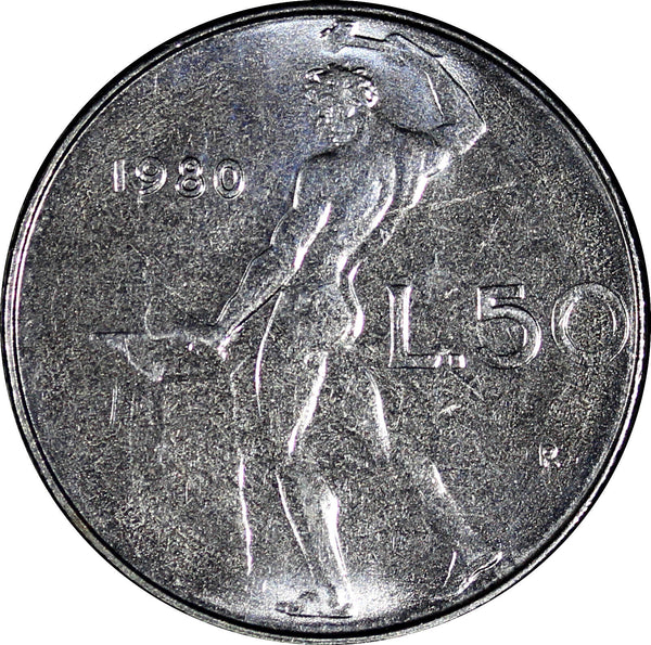 the value L.50 (50 lire, where L. is abbreviation for lire) with the mint sign