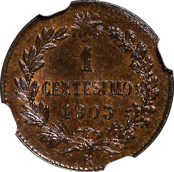 Italy Vittorio Emanuele III 1903 R 1 Centesimo NGC MS64 BN 1 GRADED HIGH KM# 35.