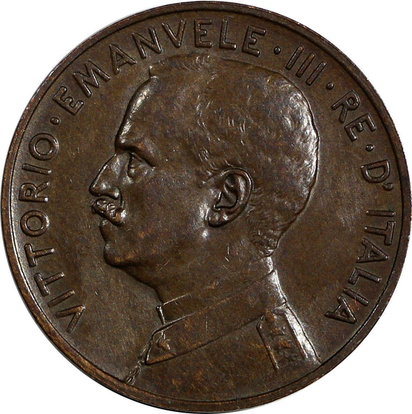 Italy Vittorio Emanuele III Bronze 1918 R 5 Centesimi Last Year aUNC KM# 42 (23)