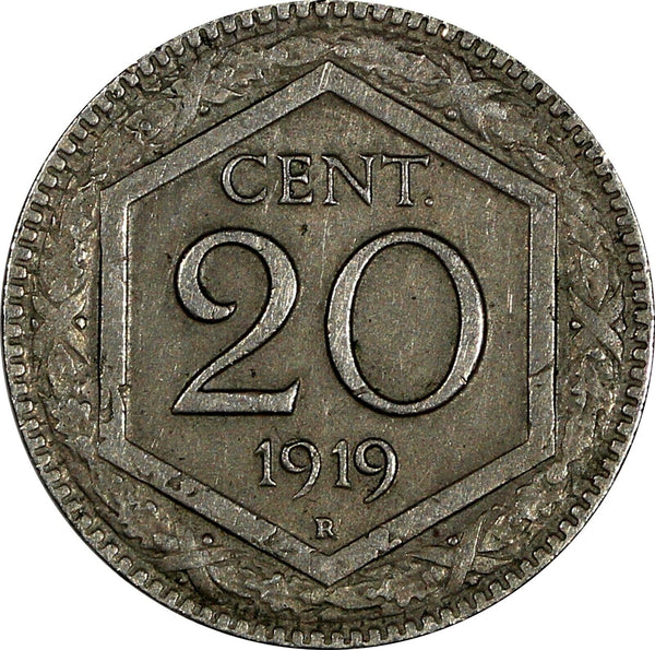 Italy Vittorio Emanuele III Copper-nickel 1919 R 20 Centesimi KM# 58 (20 341)
