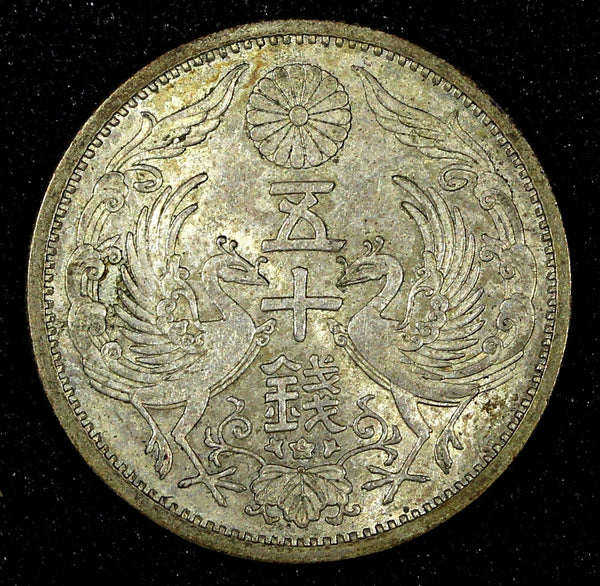 Reverse: Vertical value and denomination flanked by phoenix, paulownia crest