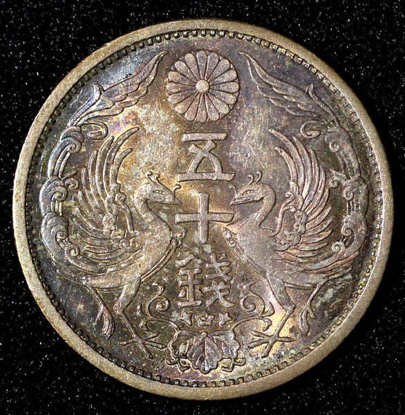 Japan Shōwa Silver Year 12 (1937) 50 Sen UNC Nice Rainbow Toned Y# 50 (28 151)