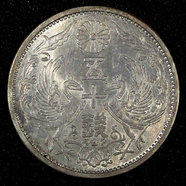 Reverse: Vertical value and denomination flanked by phoenix, paulownia crest