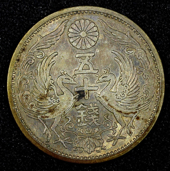 Reverse: Vertical value and denomination flanked by phoenix, paulownia crest