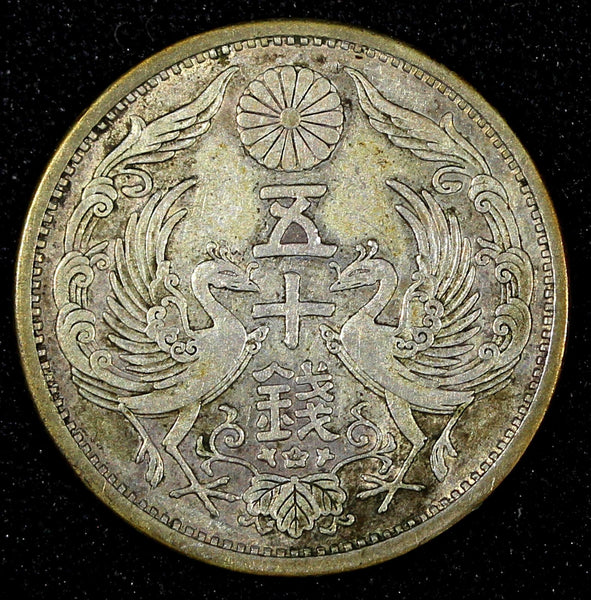 Reverse: Vertical value and denomination flanked by phoenix, paulownia crest