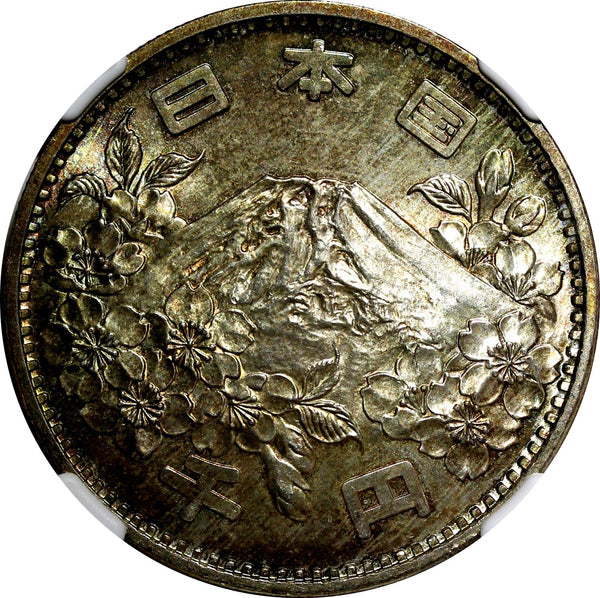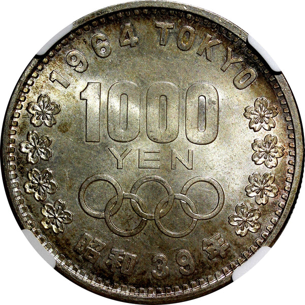 JAPAN Silver S39 1964 1000 Yen Olympics, Tokyo NGC MS66 Rainbow Toned Y# 80 (17)