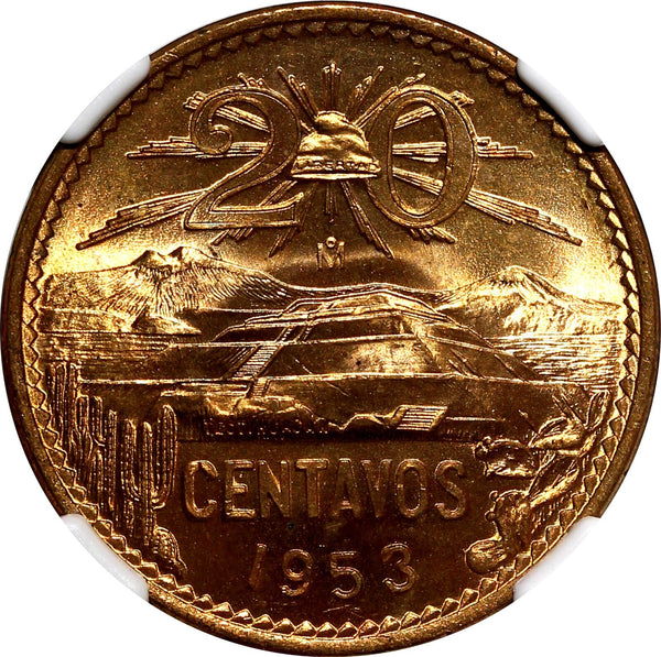 Reverse: Liberty cap divides value above Pyramid of the Sun at Teotihuacán,