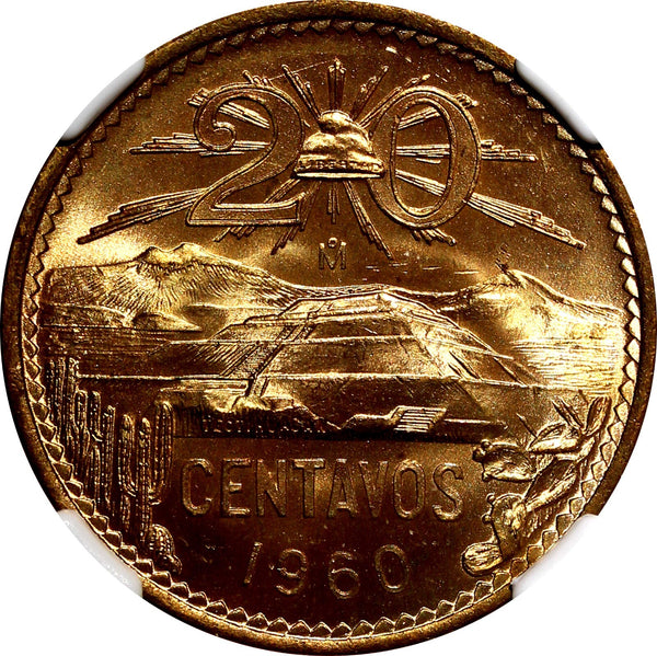 Reverse: Liberty cap divides value above Pyramid of the Sun at Teotihuacán,