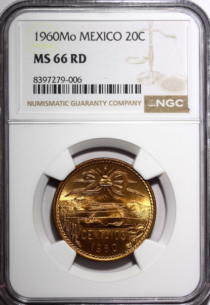 MEXICO Bronze 1960 Mo 20 Centavos NGC MS66 RD NICE FULL RED BU KM# 440 (006)