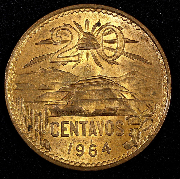 Reverse: Liberty cap divides value above Pyramid of the Sun at Teotihuacán,