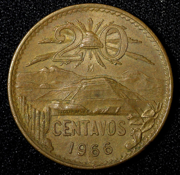 MEXICO Bronze 1966 Mo 20 Centavos Nice Coin KM# 440 (27 534)