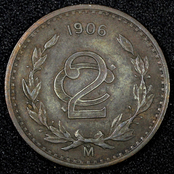 MEXICO ESTADOS UNIDOS MEXICANOS Bronze 1906 2 Centavos XF Toned KM# 419 (27 172)