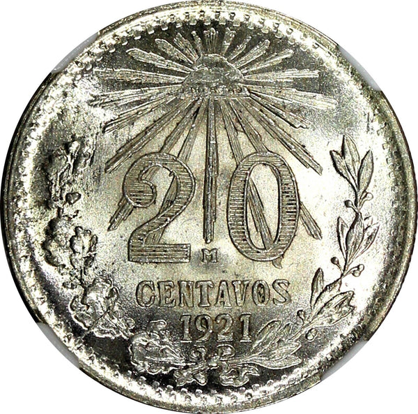 Silver 1921 M 20 Centavos