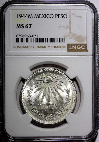 Mexico ESTADOS UNIDOS MEXICANOS Silver 1944 M 1 Peso NGC MS67 GEM BU KM# 455 (1)