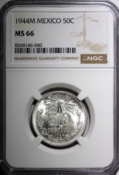 Mexico ESTADOS UNIDOS Silver 1944 M 50 Centavos NGC MS66 GEM BU KM# 447 (040)