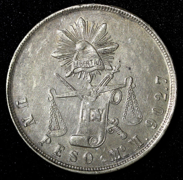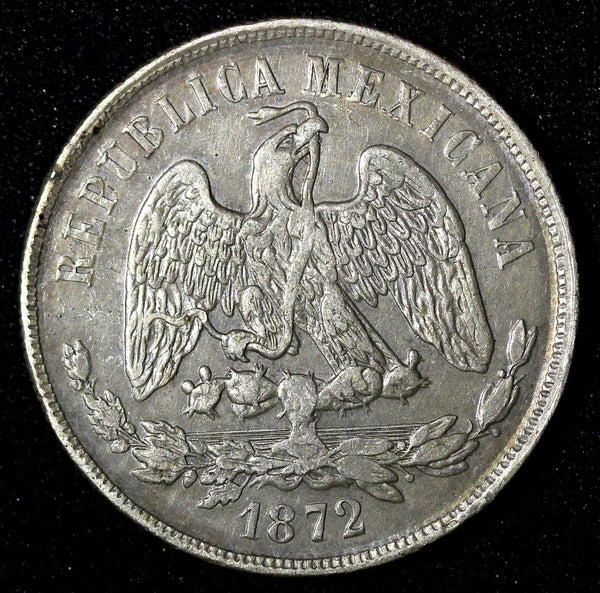 Mexico Silver 1872 Mo M Peso Scales Mexico City Mint aUNC KM# 408.5 (28 267)