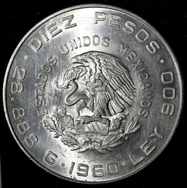 MEXICO Silver 1960 Mo 10 Pesos War of Independence 40mm ;28,88g. UNC KM# 476(2)